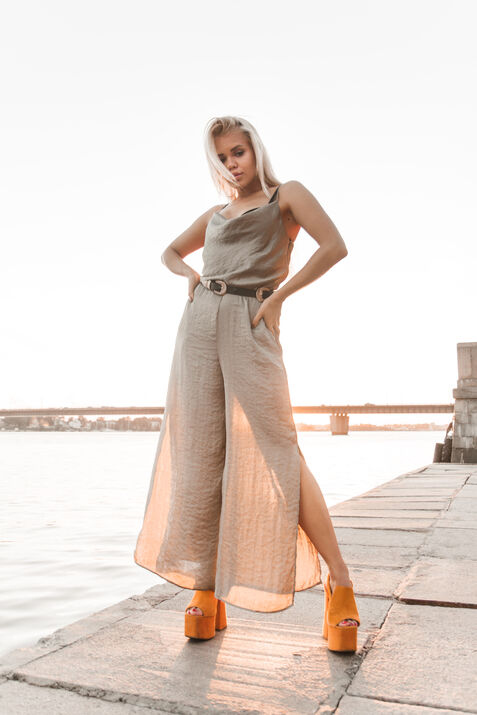 Their timeless striped design make them stand out simple yet classy. You can wear them to the office brunch or even on summer vacation. Striped linen pants flatter every body type and work in every season.